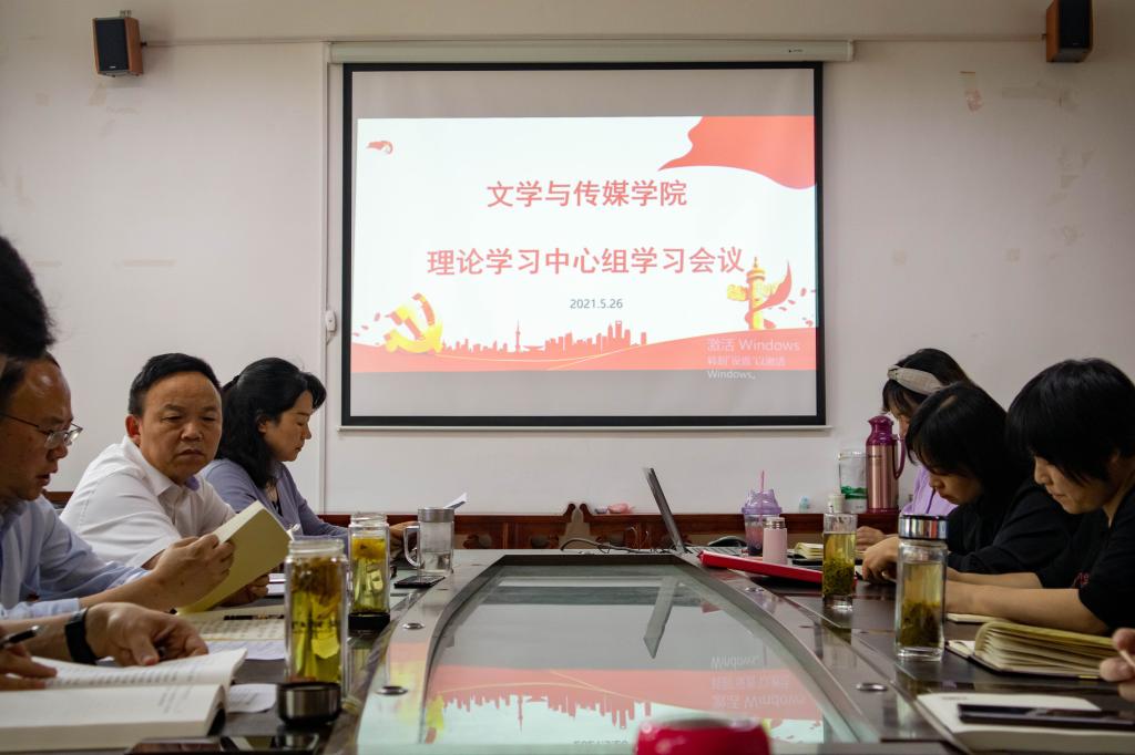 在党史专题学习中,与会人员共同观看了《延安精神:穿越历史 世代传承》微党课视频,感受延安精神传承出的伟大力量和宝贵精神财富。杨行玉结合党史学习专题,领学了习近平同志《论中国共产党历史》相关篇目,着重从“继续从延安精神中汲取力量”进行原原本本地学习,纪检委员、汉语言文学系主任李婷从文学作品的视角带领学习贺敬之诗歌《回延安》,声情并茂的朗诵使与会人员对延安精神有了更深刻的理解。