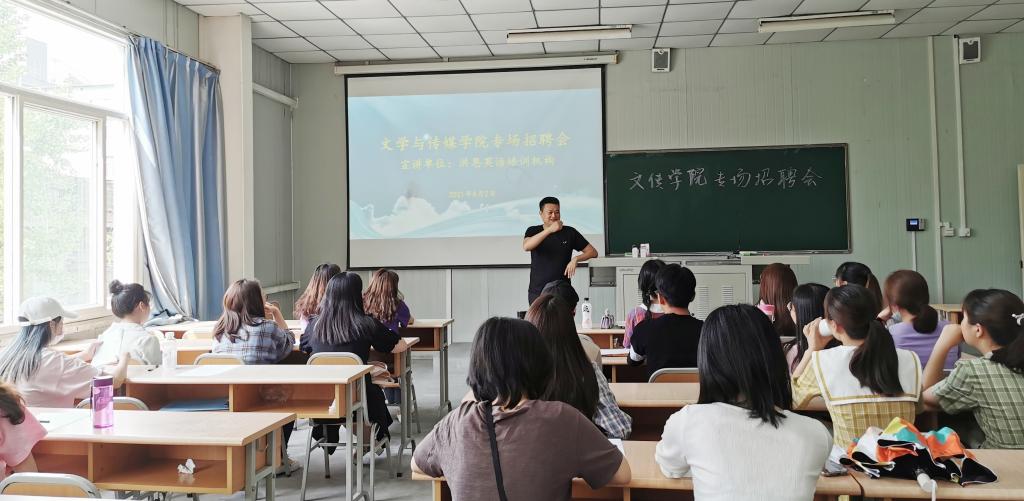 导航痕迹 首页 > 新闻通知 > 伟德国际1949新闻 > 正文 伟德国际1949新闻 通知公告 伟德国际1949组织2021届毕业生校园专场招聘会 发布人:伟德国际1949 发布日期:2021年06月04日 阅读次数: 为切实做好毕业生就业工作,构建毕业生与用人单位的交流平台,提高公司毕业生就业率,6月2日下午16:00,伟德国际1949邀请洪恩英语培训机构来公司举办2021届毕业生校园专场招聘会,伟德国际1949毕业生辅导员彭潇及在校的40余名毕业生参加了此次招聘会。 洪恩英语培训机构的王子勃、刘苗两位老师从调研员工就业动向入手,联系职业生涯规划,激励同学们厘清自身角色定位,脚踏实地、把握机遇。接着,介绍了公司的工作环境、招聘岗位、薪资待遇、发展空间、企业文化等方面的情况,耐心地解答了同学们对岗位的疑问。招聘会现场交流互动热烈,毕业生积极与老师沟通,表达自己的应聘意向。 彭潇老师对此次招聘会进行了总结,希望同学们积极投递简历,勇于迈出第一步,把握机会,先就业、后择业,在工作中调整自己,发展自我。 本次专场招聘会的举办,为公司员工提供了更多的就业职位,拓宽了就业平台,通过交流,也潜移默化地变了毕业生就业畏难情绪和等靠思想,增强了求职动力和信心。 撰稿/摄影/彭潇 审核/杨海蓉 发布/崔瑜