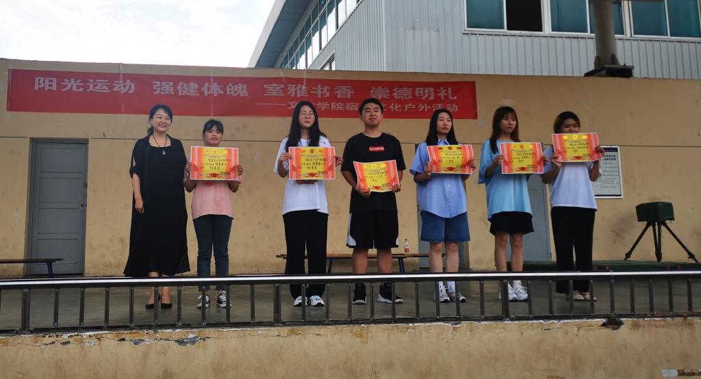 本次宿舍文化户外活动共包含五个项目:“同心鼓”、“大脚板竞速”、“八人九足”、“能量传递”、拔河比赛。其中“同心鼓”、“大脚板竞速”、“八人九足”、“能量传递”以宿舍外单位报名参赛,拔河比赛以班级为单位报名参赛。比赛过程中,各团队参赛选手们团结协作、全力以赴。经过紧张有序的比赛,各比赛项目都顺利完成。主持人宣布了比赛的最终成绩,并为获奖宿舍颁发了荣耀证书以及精美奖品。