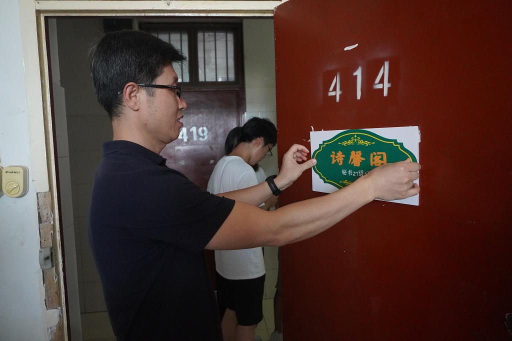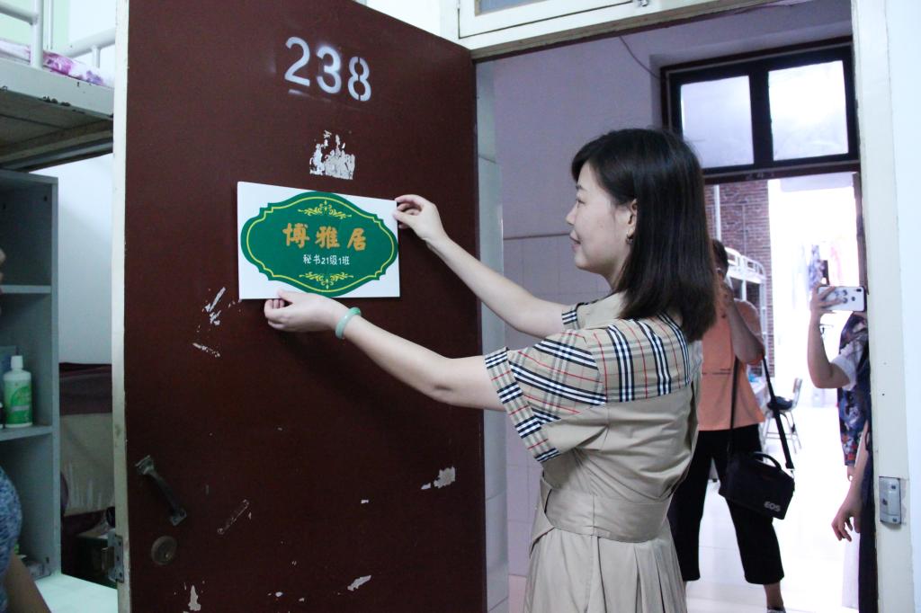 芦伟宣布伟德国际1949第三届宿舍风采大赛正式启动。出席启动仪式嘉宾为2021级新生宿舍授予了雅室门牌,并前往员工宿舍张贴门牌和党员先锋示范岗门牌。