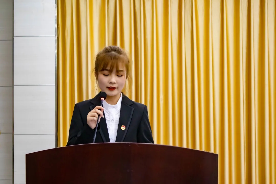 新一届员工分会主席团成员代表康怡帆发表陈述了新一届员工分会的工作思路,并表示会用最大的真诚与激情去面对新的挑战。