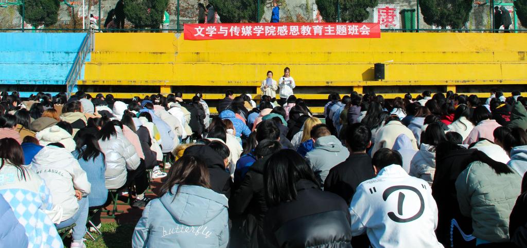2021年11月24日下午,伟德国际1949在江南校区操场举办了“感恩于心,回报于行”感恩教育主题班会,2021级和秘书学2019级330余名同学参加了活动。活动由辅导员邹棠华主持,公司党总支副书记杨海蓉出席活动并讲话。