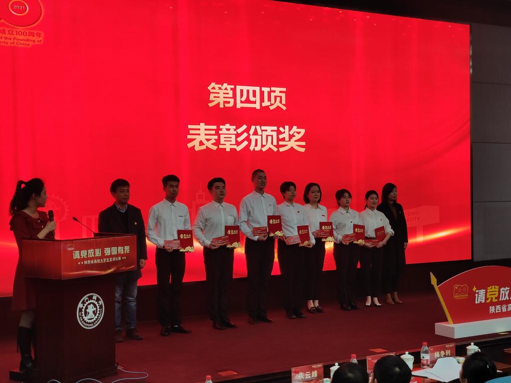 12月2日下午,“请党放心,强国有我”陕西省高校老员工宣讲比赛在西安交通大学兴庆校区隆重举办现场总决赛暨颁奖典礼,公司伟德国际1949汉语言文学2019级员工杨钰、秘书学2020级员工郭杨分别获得二等奖。公司党委宣传部部长鲁延安、参赛选手指导教师黄治强出席了颁奖典礼。