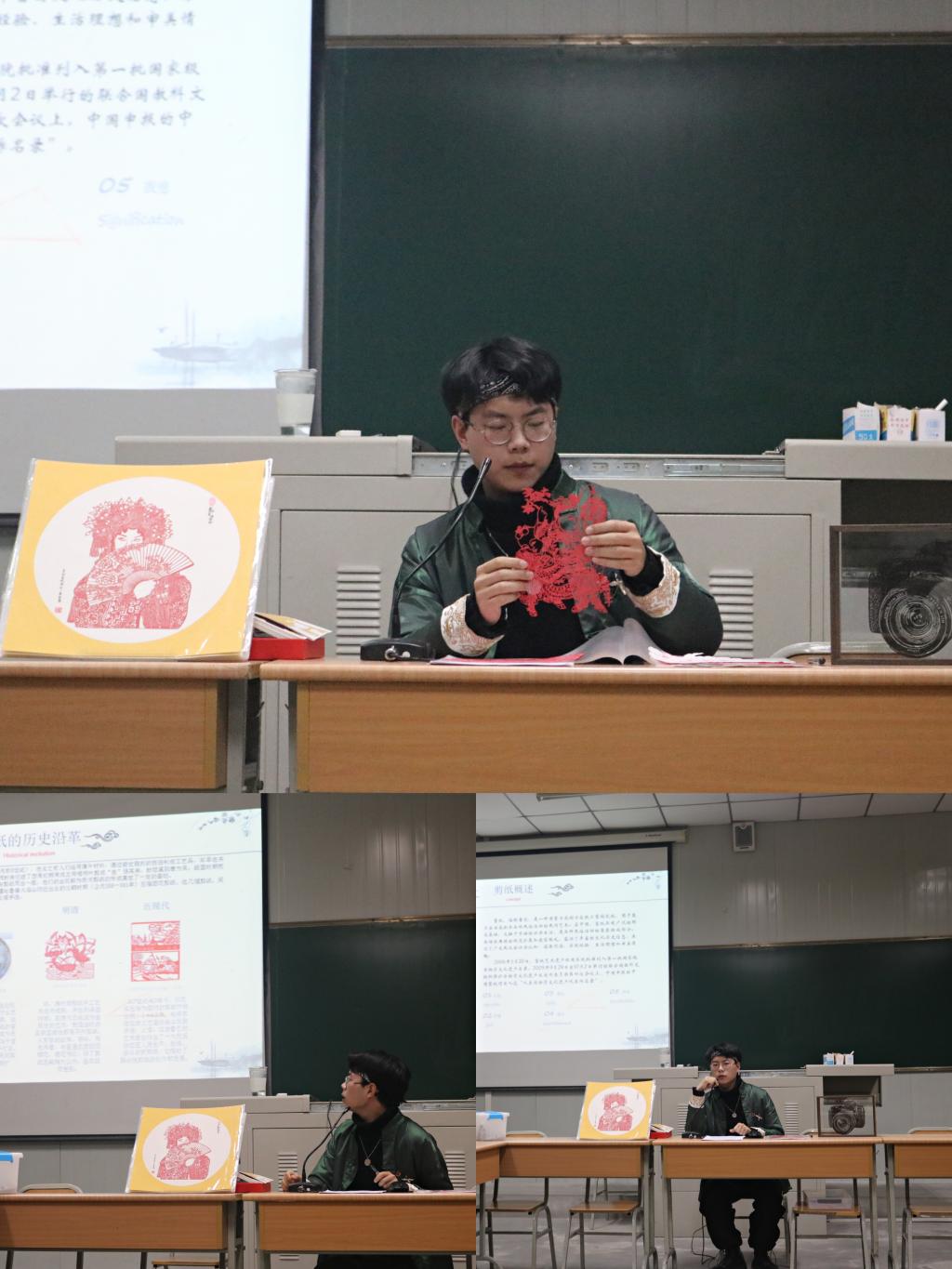 在活动的最后,三位同学分享了本次讲座的感触,并得到了剪纸钥匙扣和明信片。梁少华总结说:“前人留下的这浪漫而厚重的礼物,值得被深刻而虔诚的传承,当非遗走进年轻人,传统就有了延续的希望;当年轻人走进非遗,成长将获得文化的滋养。”