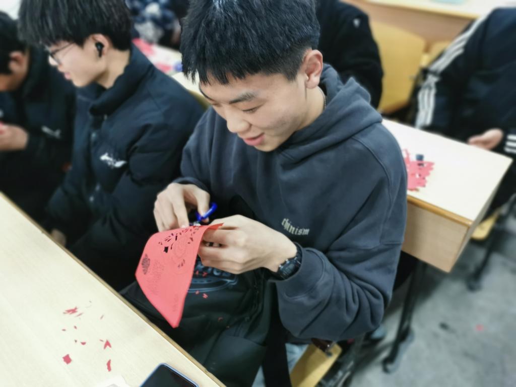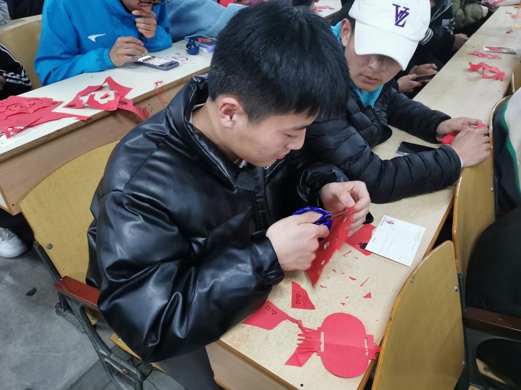 梁少华以传统与创新的角度出发,层层递进,讲解了如何了解一门传统技艺,并落在剪纸文化的追踪溯源上,通过一系列的图文、实物展示,生动清晰地介绍了剪纸的基本知识。针对体育生的特点,他整合讲稿内容,将重点放在互动体验上,同学们跃跃欲试,积极完成了剪纸创作,梁少华对同学们提出的问题也做了细心地解答,并将他的文创明信片送给现场同学做以纪念。讲座在热情洋溢的氛围中顺利结束。