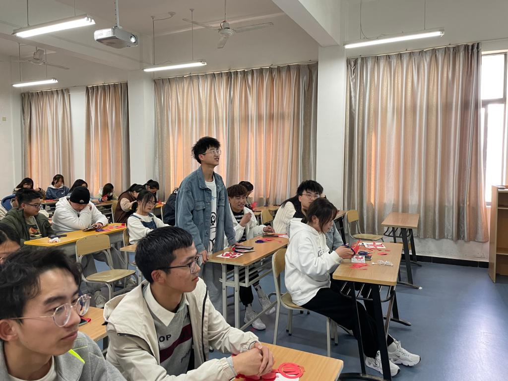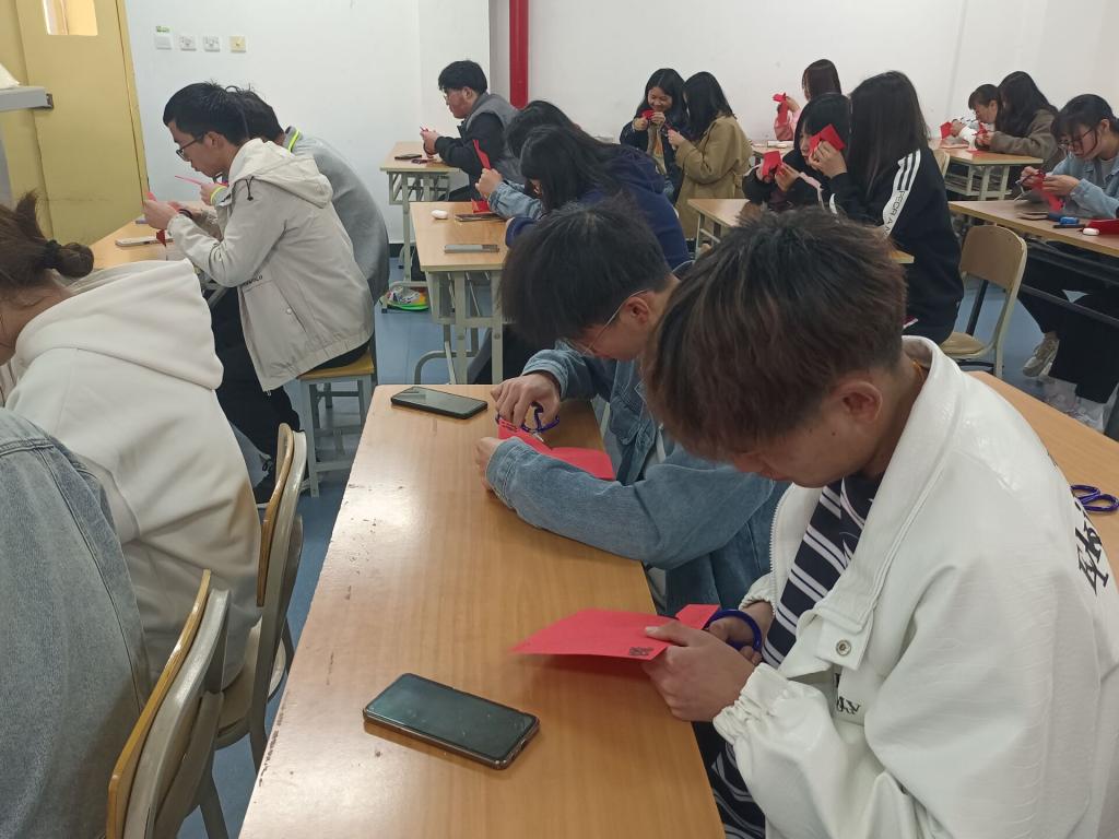 为了让同学们感受剪纸艺术的魅力,梁少华给同学们分发剪纸材料让同学们动手尝试,并手把手指导剪纸技巧。分享过程中还倡导大家传承和保护民族艺术,弘扬爱国情怀,提高审美水平,增强文化自信。