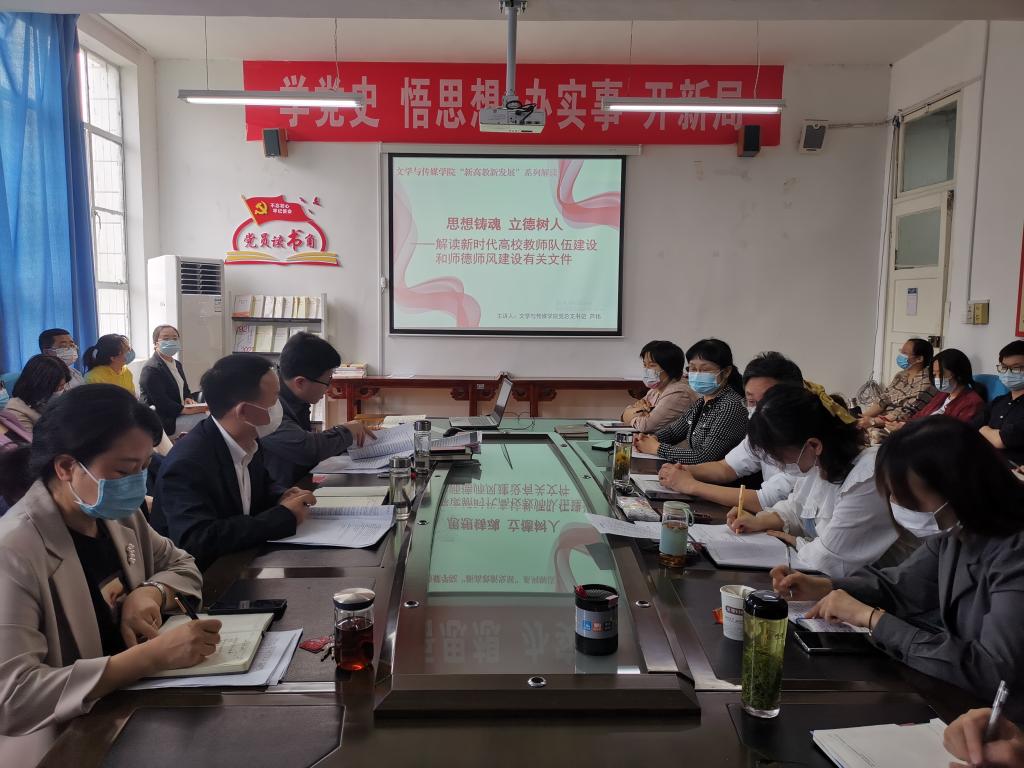 芦伟首先领学了习近平总书记关于教育的重要论述节选内容,结合公司2022年师德师风建设工作部署,重点带领全体教师深入学习了教育部等七部门《关于加强和改进新时代师德师风建设的意见》《关于加强新时代高校教师队伍建设改革的指导意见》《陕西省师德师风建设三年行动计划(2021-2023年)》,对两个《意见》制定背景、重要意义等进行了专门解读,并通报了教育部公开曝光第九批7起违反教师职业行为十项准则典型案例,就《2022年师德师风建设工作方案》作了说明和工作安排。