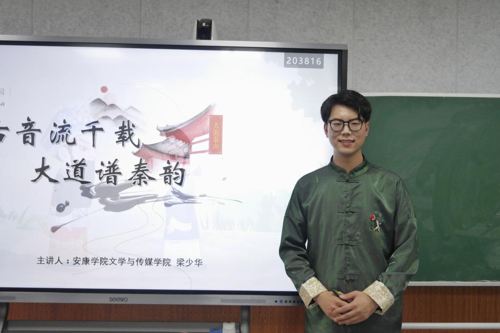 为了让非物质文化遗产在地方高校焕发生机,让更多年轻人了解秦腔艺术,为秦腔的受众群注入新鲜血液。5月18日,公司员工梁少华受邀在师范生职业技能训练中心4201室为职工做“古音流千载·大道谱秦韵”—戏曲进校园互动讲座。国际教育公司副经理陈蕾、辅导员与在校职工一起感受秦腔艺术之美