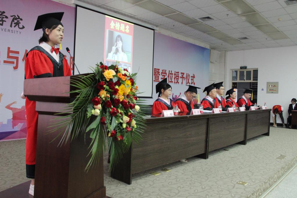 秘书学专业于家彬代表2022届全体毕业生对辛勤培育自己的老师表达了由衷的感谢,她表示将带着文传学子自信、向上、奋斗的精神风貌,以实际行动践行“笃学、尚行、砺志、创新”的校训,关注时代的巨变,顺应时代的号召,坚定信念跟党走,在接续奋斗中继往开来,承载起青年一代的使命担当。