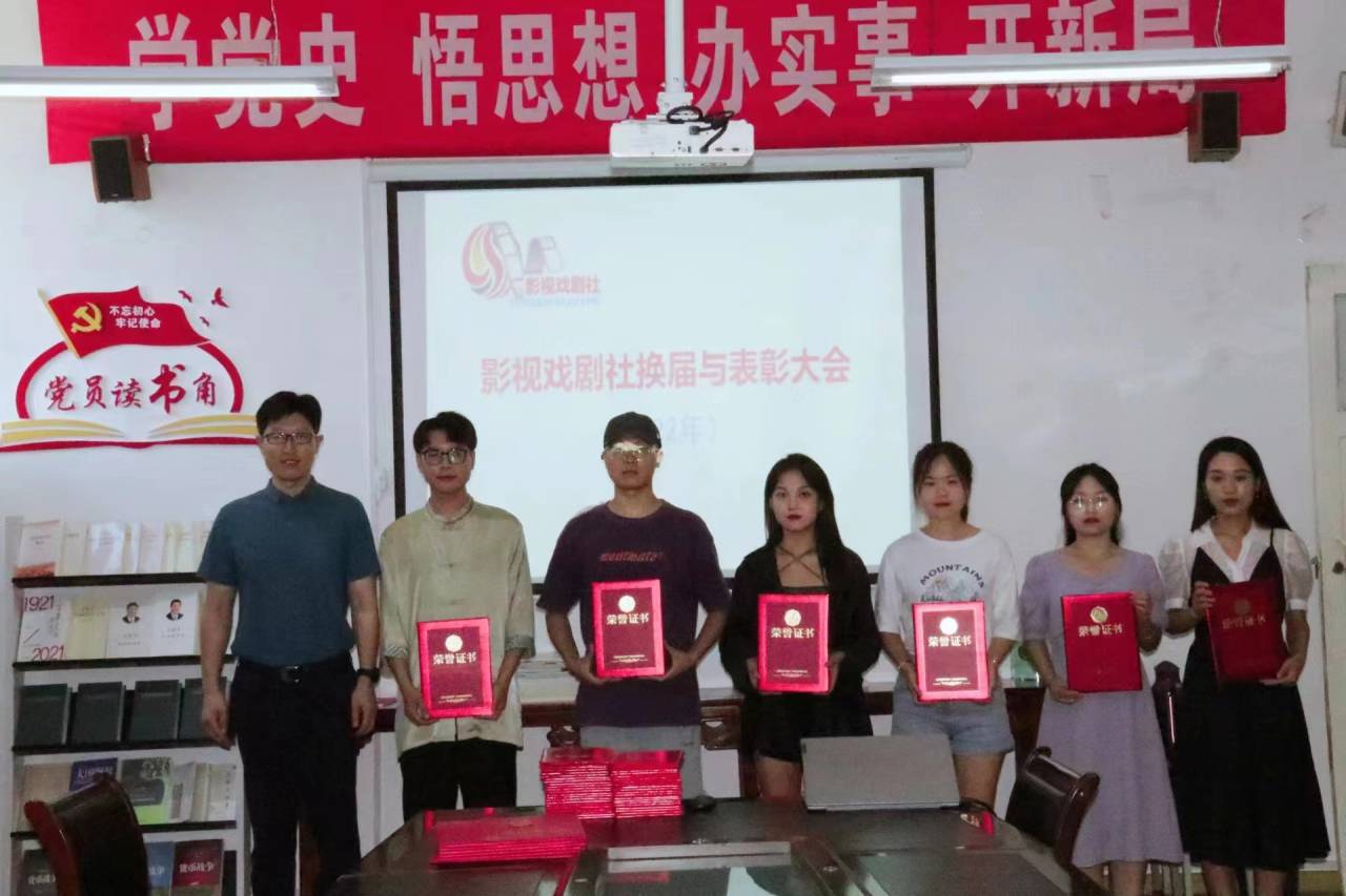 2022年6月24日下午,公司影视戏剧社换届与表彰大会在江南校区2307会议室召开。文学与传媒公司党总支书记芦伟、副书记杨海蓉、影视戏剧社指导老师邹棠华以及影视戏剧社成员近三十人出席了会议。会议由影视戏剧社常务副社长桑雪同学主持。