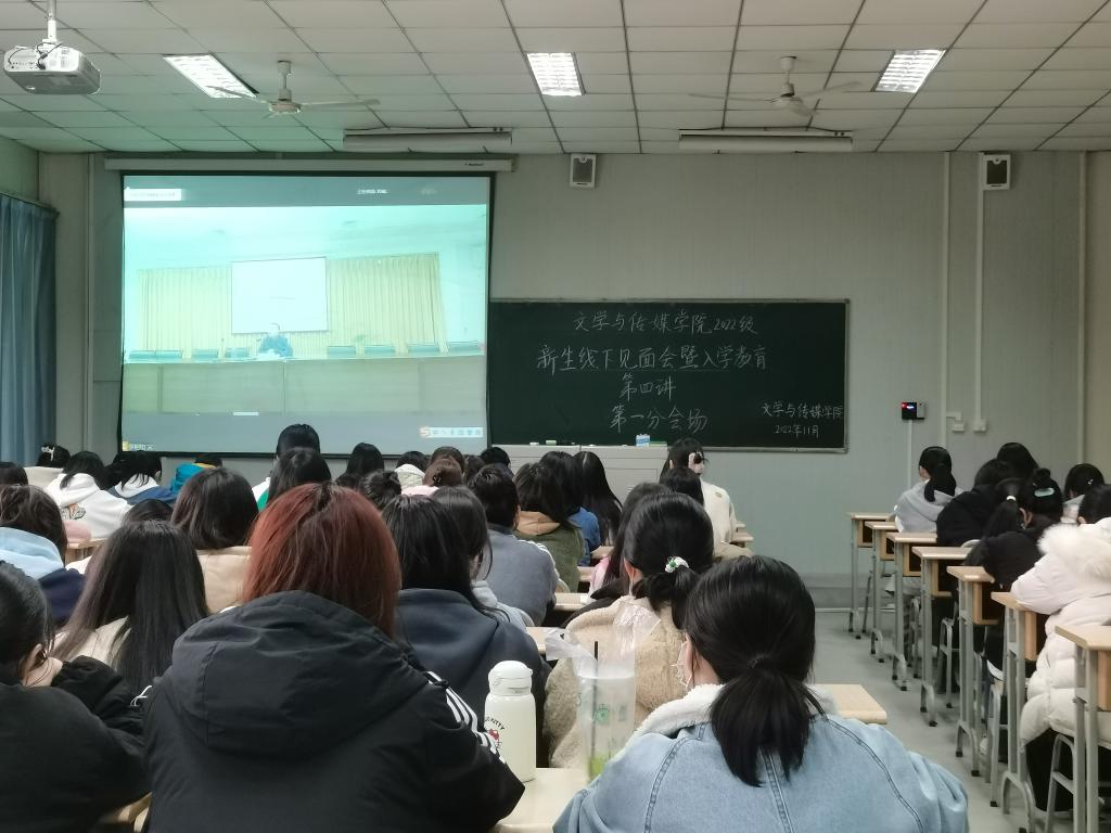 2022年11月16日下午,伟德国际1949在图书馆6楼报告厅隆重举行2022级新生见面会及入学教育第四讲。因为疫情,见面会采用线上与线下结合的方式进行,设置一个线下主会场、两个线上分会场。伟德国际1949领导班子、系主任、两办主任、新生辅导员及全体2022级新同学分别以线上线下的形式参会。见面会由文学与传媒公司党总支副书记杨海蓉主持。