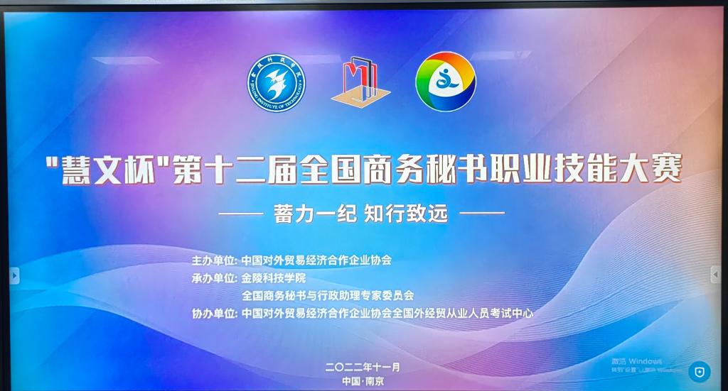 2022年11月19日,由中国对外贸易经济合作企业协会主办,金陵科技公司和全国商务秘书与行政助理专家委员会承办,中国对外贸易经济合作企业协会全国外经贸从业人员考试中心协办的慧文杯”第十二届全国商务秘书职业技能大赛顺利举行。