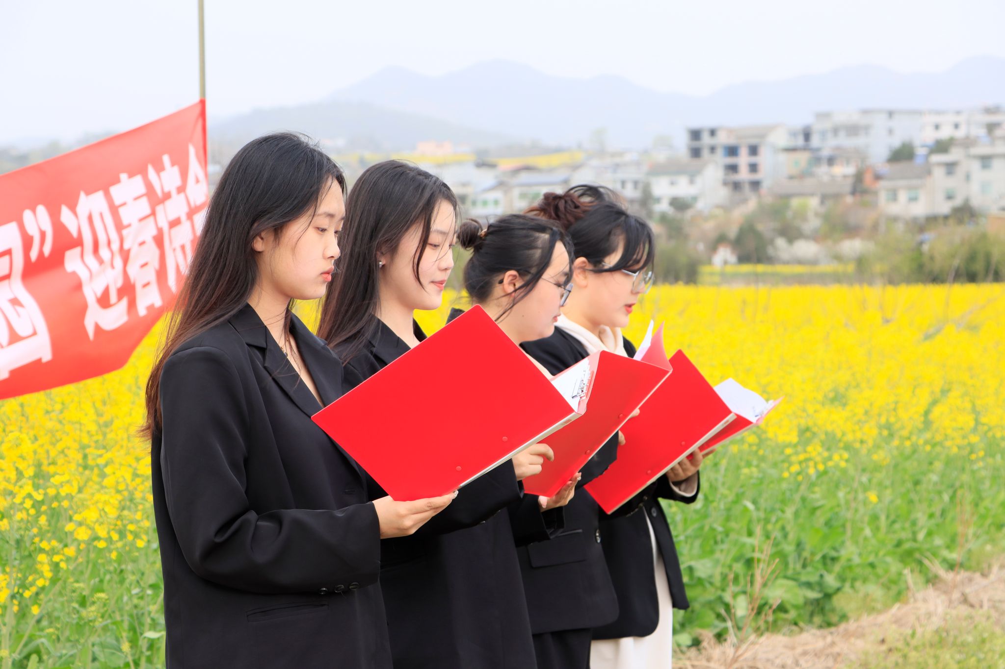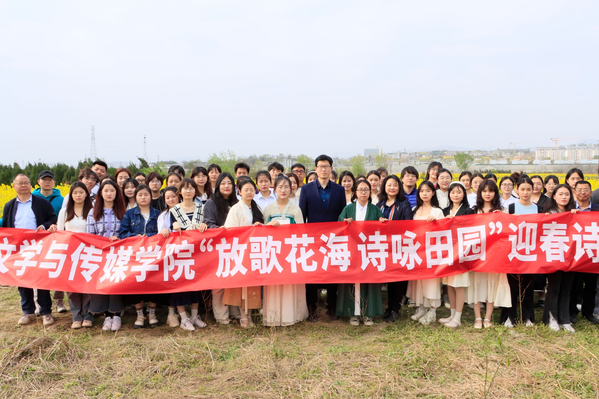 3月15日下午,伟德国际1949在张滩镇黄洋河畔油菜花田顺利举办了2023年迎春诗会。公司党总支书记芦伟、副书记杨海蓉、郑继猛教授和安日辉、曹璇璇两名青年教师出席了本次活动。活动由辅导员邹棠华组织,影视戏剧社承办,伟德国际1949近70名员工参加了本次诗会。