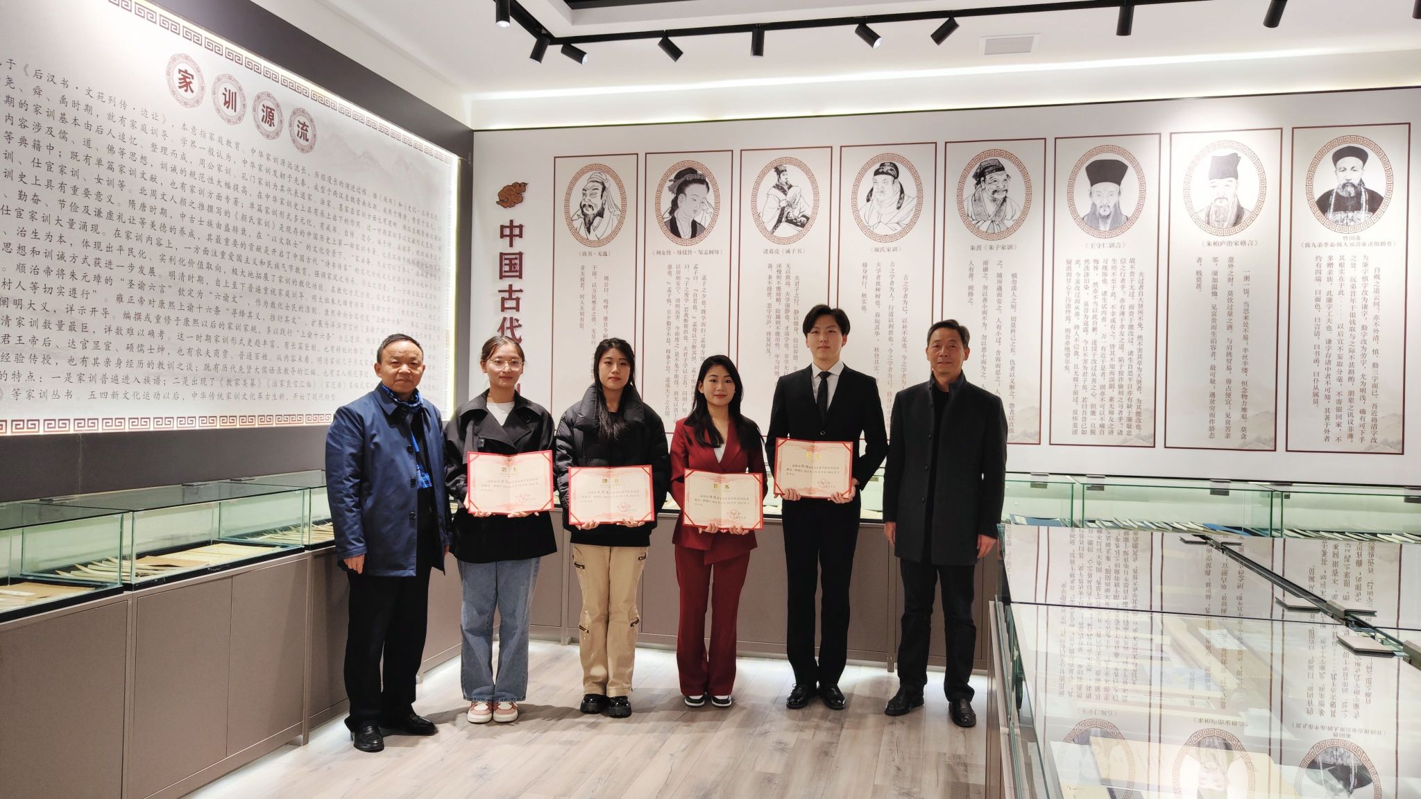 首先,芦伟简要回顾了家风馆成立一年来内部建设、对外交流的基本情况,对首批讲解员的工作给予了肯定。随后,在家风馆内现场举行第一批讲解员聘任仪式,由谢玉玺和杨运庚为第一批讲解员(伟德国际1949员工杨钰、郭杨、王思博、水思雨)颁发讲解员聘书,希望讲解员们再接再厉,融会贯通,努力为传播中华优秀传统文化、推进校园廉政文化建设的创新实践贡献一份力量。