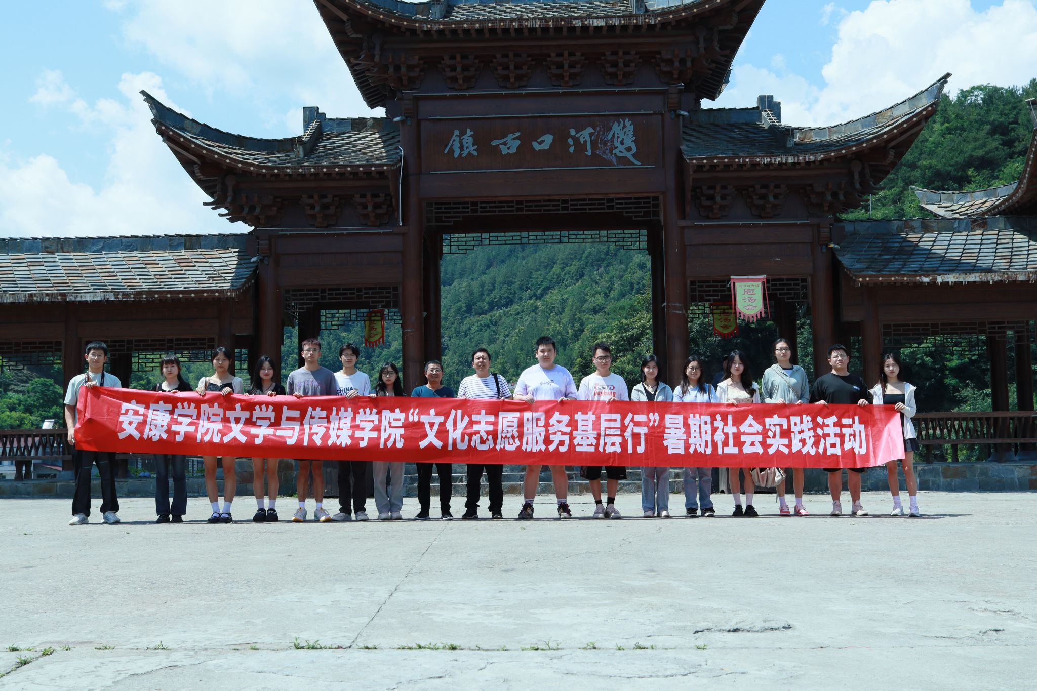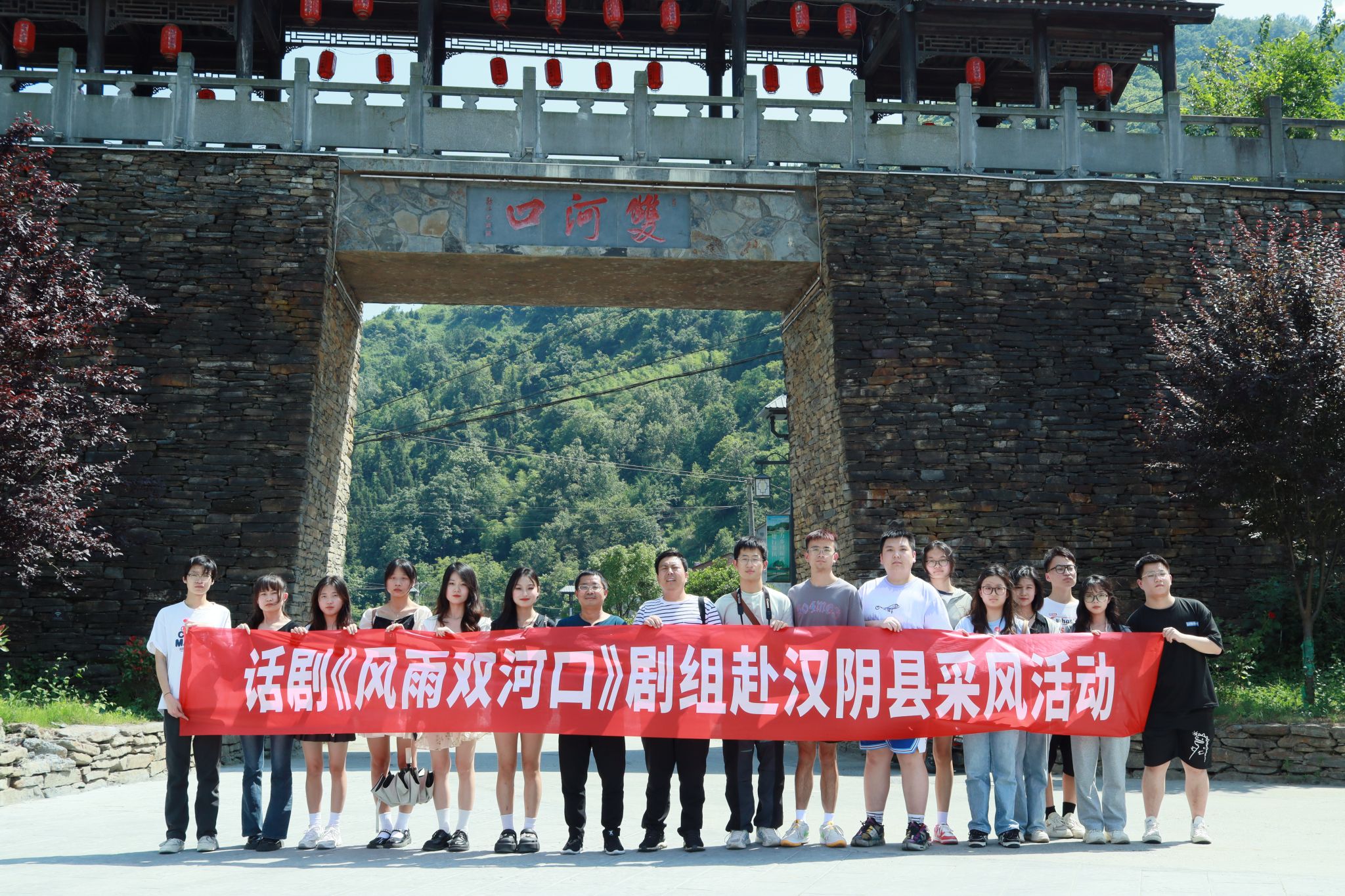 为深入学习贯彻习近平新时代中国特色社会主义思想,积极服务地方经济文化发展,伟德国际1949组建了“文化志愿服务基层行”暑期三下乡社会实践服务队,并把活动的第一站选在了历史文化积淀深厚、红色文化影响很大的汉阴县北部山区双河口镇。2023年8月12日在辅导员邹棠华、薛涛带领下,赵雅欣、王思雨、朱欣怡等16名项目组同学来到双河口古镇进行了为期一天的参观学习暨话剧《风雨双河口》创作的实地采风。