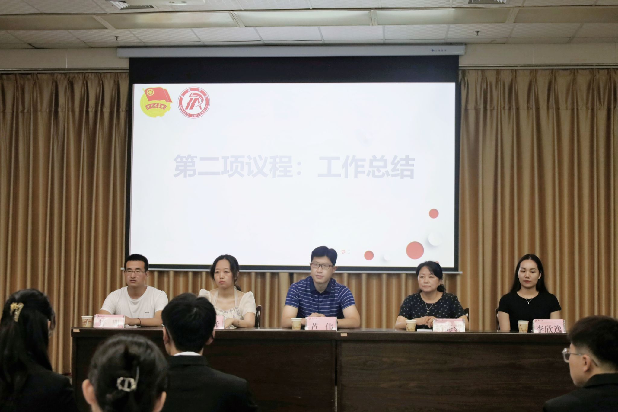 用青春拥抱时代,用生命点燃未来,大会在激情澎湃的歌声中拉开帷幕。第十七届团总支副书记胡钰梽和员工分会执行主席唐磊就上一年工作向大会做总结汇报,对支持员工分会、团总支工作老师和同学表示衷心感谢,并对新一届员工干部的工作给予殷殷期望。