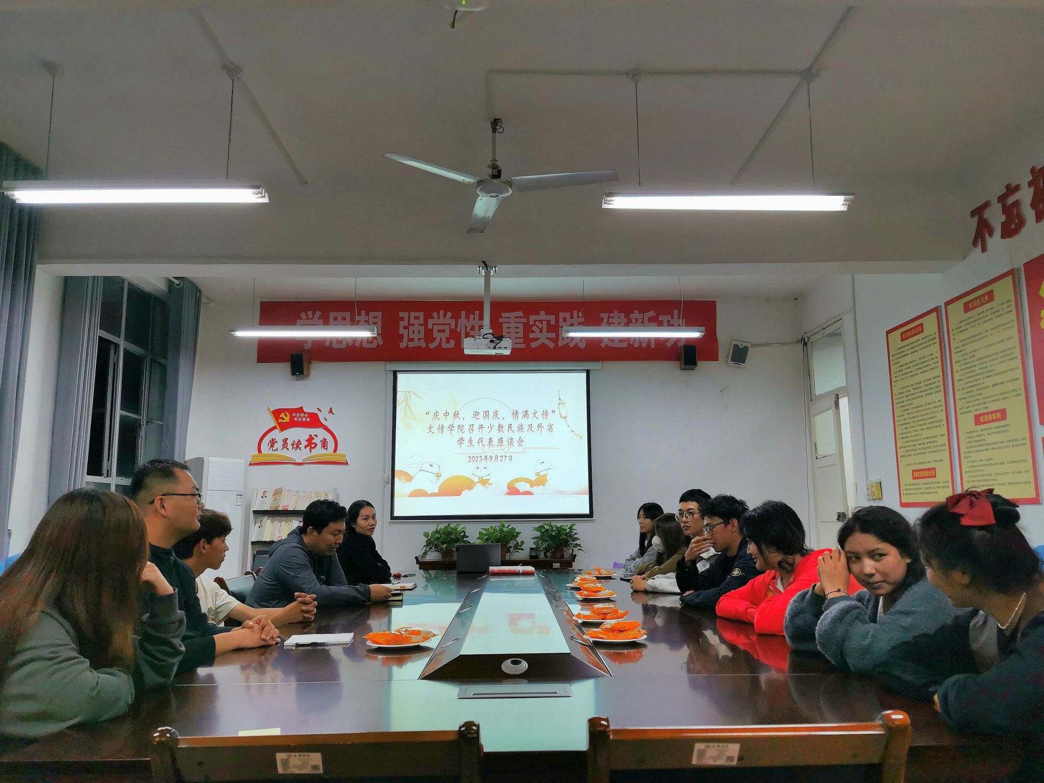 每逢佳节倍思亲,为进一步加强与少数民族员工的沟通与交流,让少数民族和外省的员工在校度过一个温情满满的中秋、国庆佳节,9月27日晚,伟德国际1949少数民族座谈会在2307室召开。院学工办主任薛涛,团总支书记彭潇,新生辅导员李欣逸以及来自吉林,西藏,广西等地区的少数民族员工参加座谈会,学工办副主任薛涛主持。