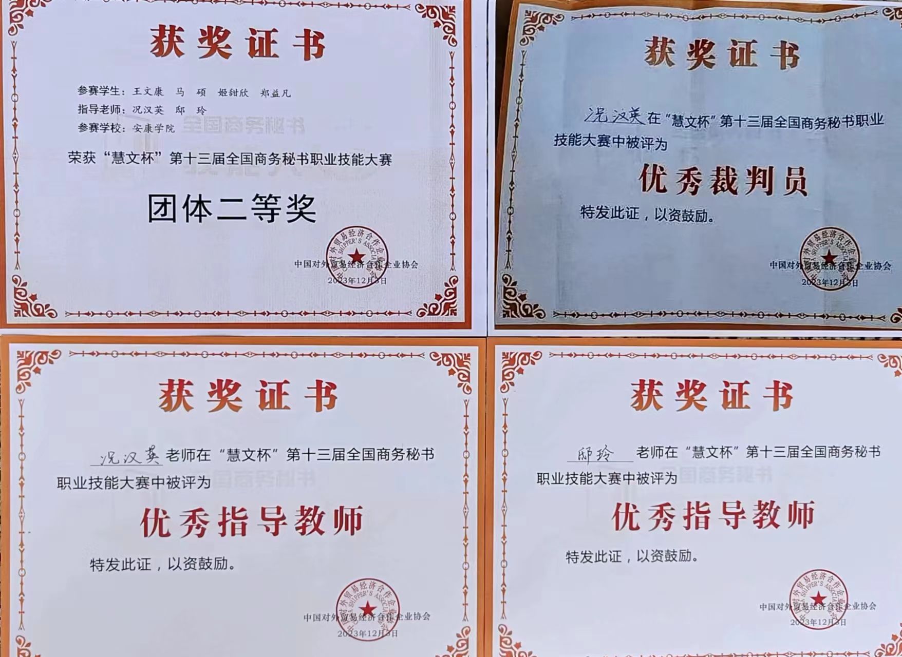 “慧文杯”第十三届全国商务秘书职业技能大赛于2023年12月1日至3日在浙江警官职业公司隆重举行,来自全国近600名师生相聚西子湖畔同台竞技。大赛由中国对外贸易经济合作企业协会主办,浙江警官职业公司和全国商务秘书与行政助理专家委员会承办,中国对外贸易经济合作企业协会外经贸从业人员考试中心协办。伟德国际1949代表队在本次全国商务秘书职业技能大赛中再创佳绩,荣获“团体二等奖”。