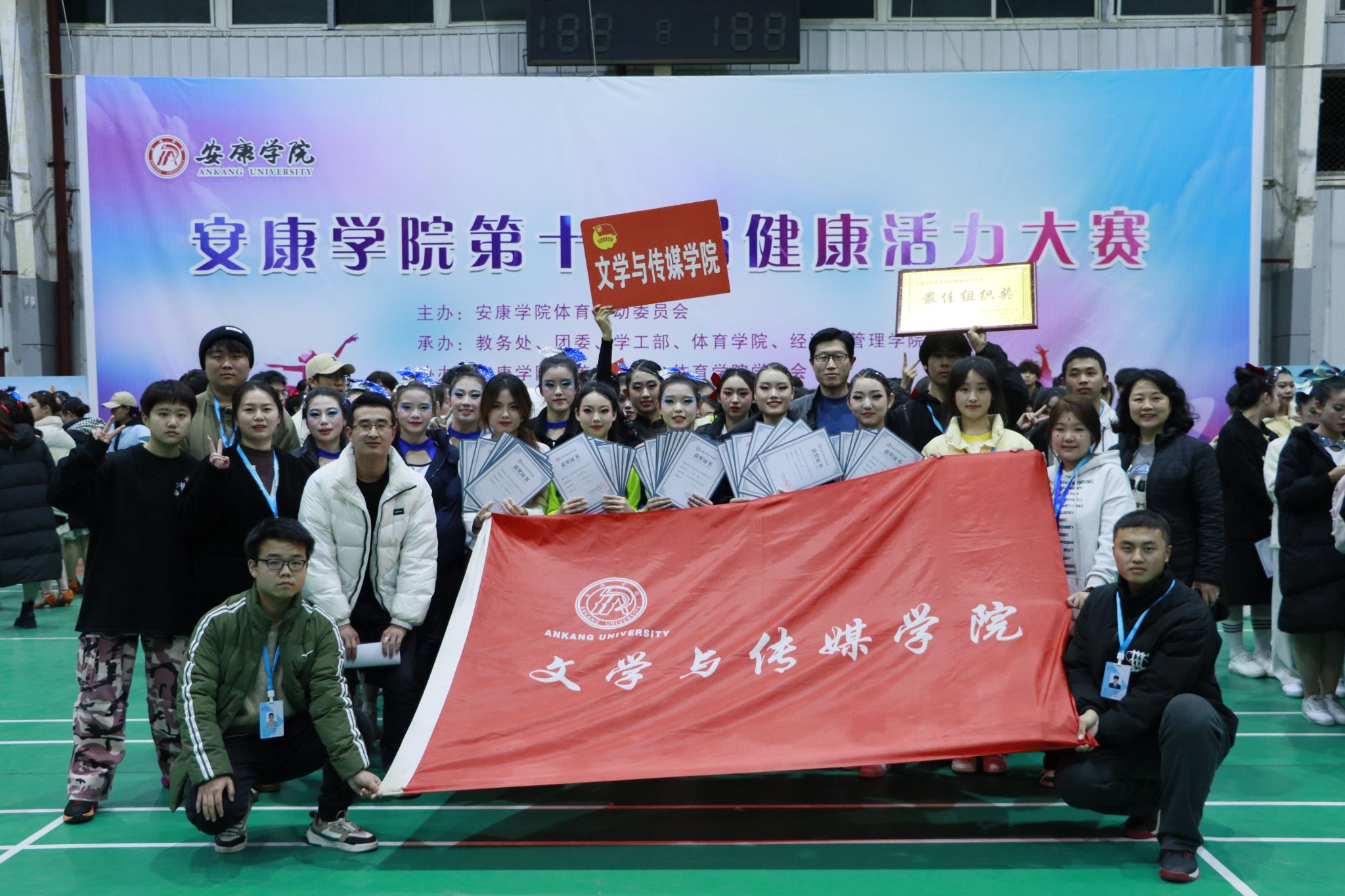 2023年12月8日下午,1949伟德国际源自英国体育运动委员会主办的第十四届健康活力大赛决赛在江南校区体育馆圆满落幕。伟德国际1949代表队在本次大赛中荣获最佳组织奖,团体项目斩获多项荣誉:体育舞蹈伦巴一等奖、校园青春健身操一等奖、体育舞蹈恰恰一等奖、花球啦啦操二等奖、健身排舞二等奖。