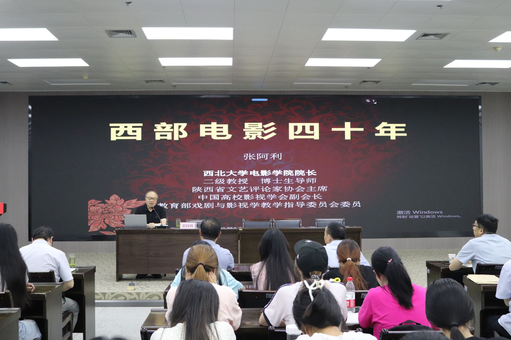 学术报告中,张阿利以“西部电影四十年”为主题,从中国西部电影的背景和概念、钟惦棐西部电影理论及其争鸣、中国西部电影的美学特征、中国西部电影与民族传统文化、第四代第五代导演与中国西部电影、新世纪新西部电影的新发展、新时代中国西部电影的新实践等七个方面对中国西部电影进行了全面解读,梳理分析了中国西部电影流派区别于其他电影类型的独特气质,归纳了参与中国西部电影创作的不同代际导演的艺术特征和追求,探讨了中国西部电影作为一种地域文化标志所具有的独特魅力,以及中国西部电影所担负的新时代创新使命和艺术价值。