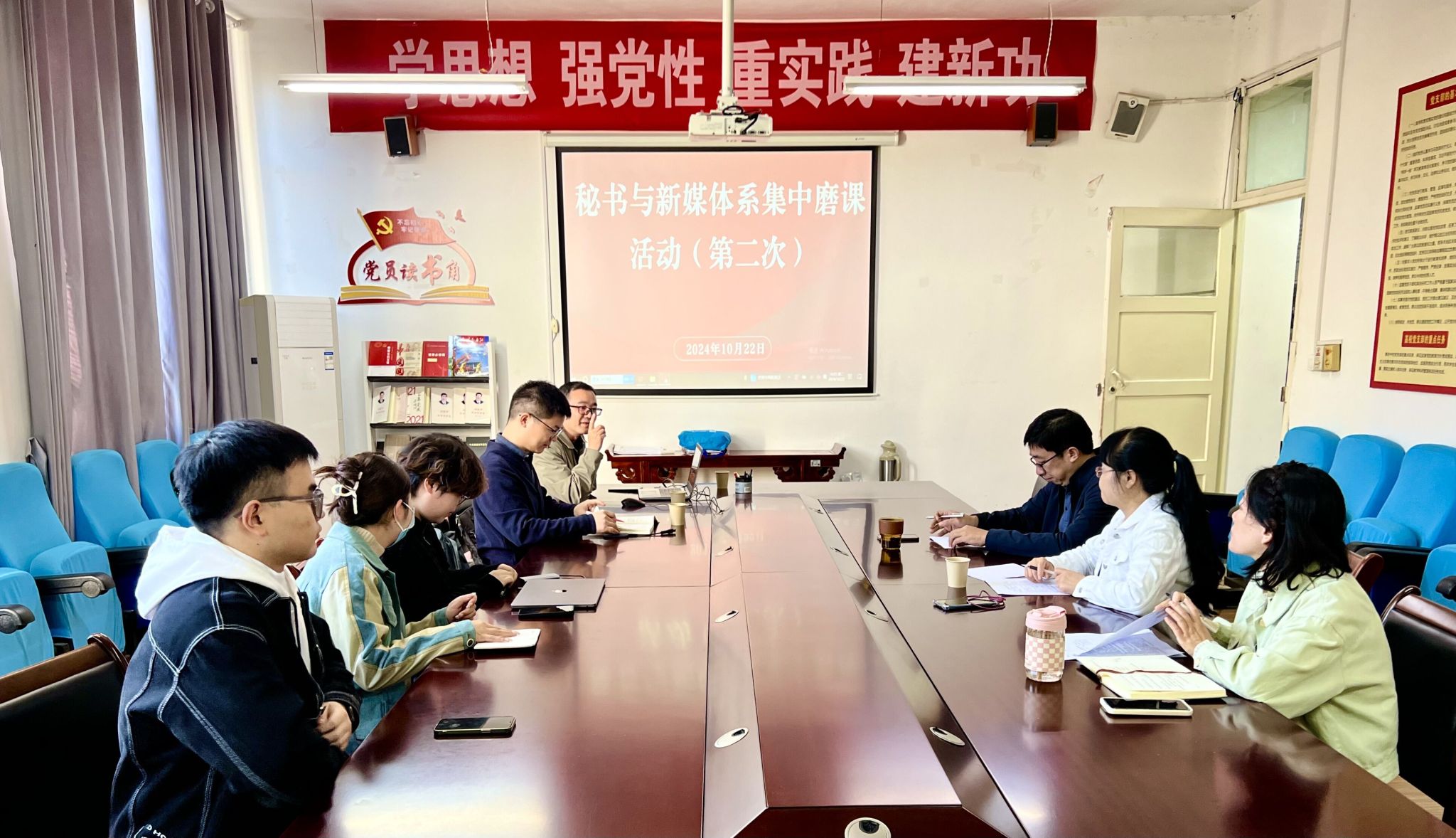 帮助教师提升课堂教学水平按照公司统一安排,秘书与新媒体系10月21-22日在2307会议室组织举办了磨课教研活动。活动邀请孙鸿、崔瑜两位教学督导以及曹刚副经理全程参与指导由系主任张建涛主持,秘书与新媒体系全体教师参与
