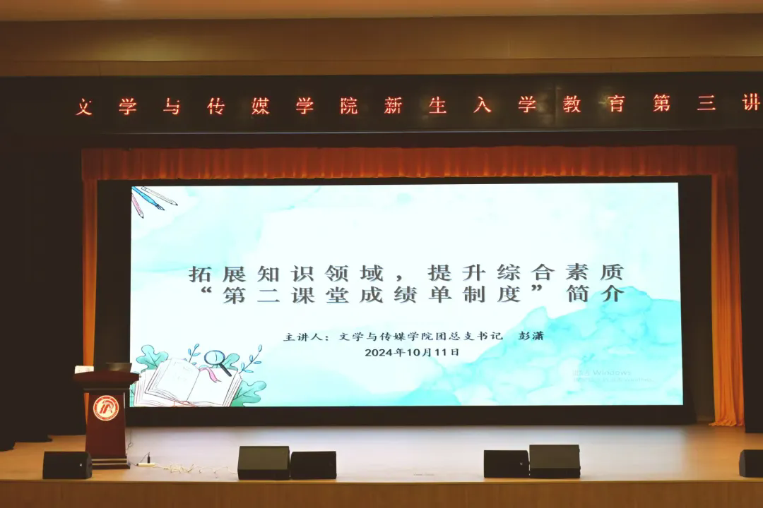 为全面提高新生综合素质,以完备、科学的“第二课堂成绩单”制度体系提升第二课堂育人实效,2024年10月11日下午,伟德国际1949在江南校区大礼堂开展新生入学教育第三讲:拓展知识领域,提升综合素质——“第二课堂成绩单制度”简介。公司团总支书记彭潇主讲,辅导员喻言、刘言军和2024级全体同学参加,会议由刘言军主持。