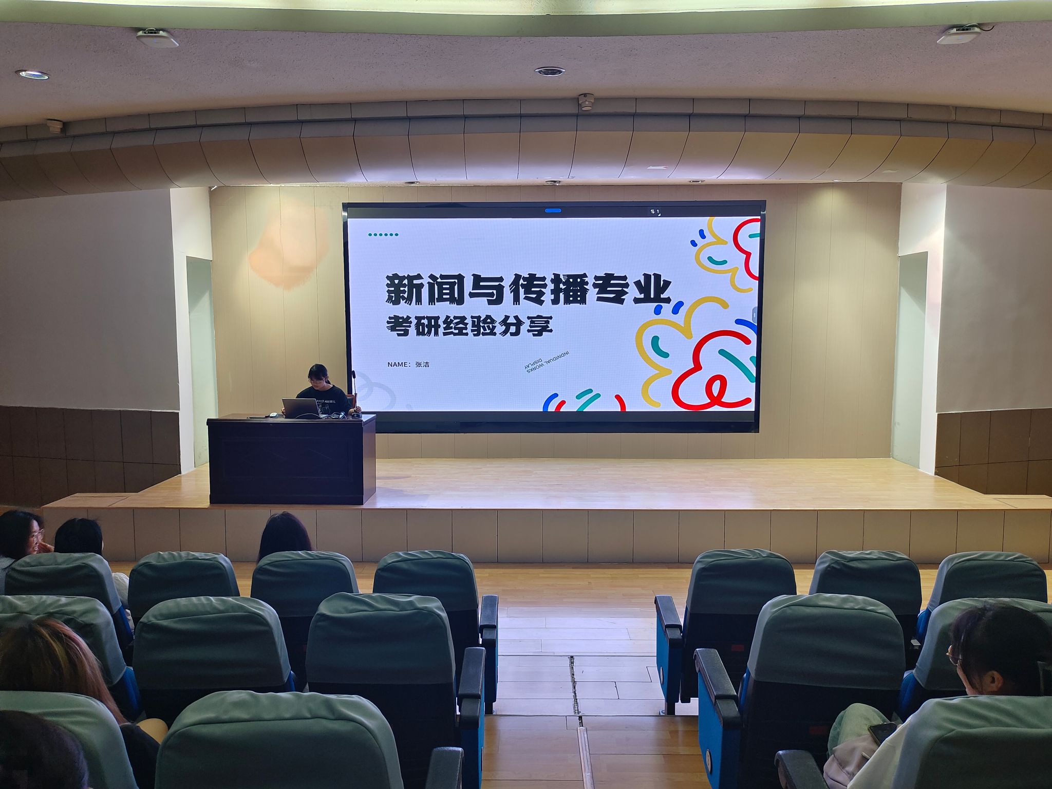 在互动环节,现场同学积极提问,就“如何平衡实习与考研”“如何缓解备考压力”“跨专业考研的注意事项”等问题等问题与学姐展开深入交流,三位分享人耐心细致地逐一解答。