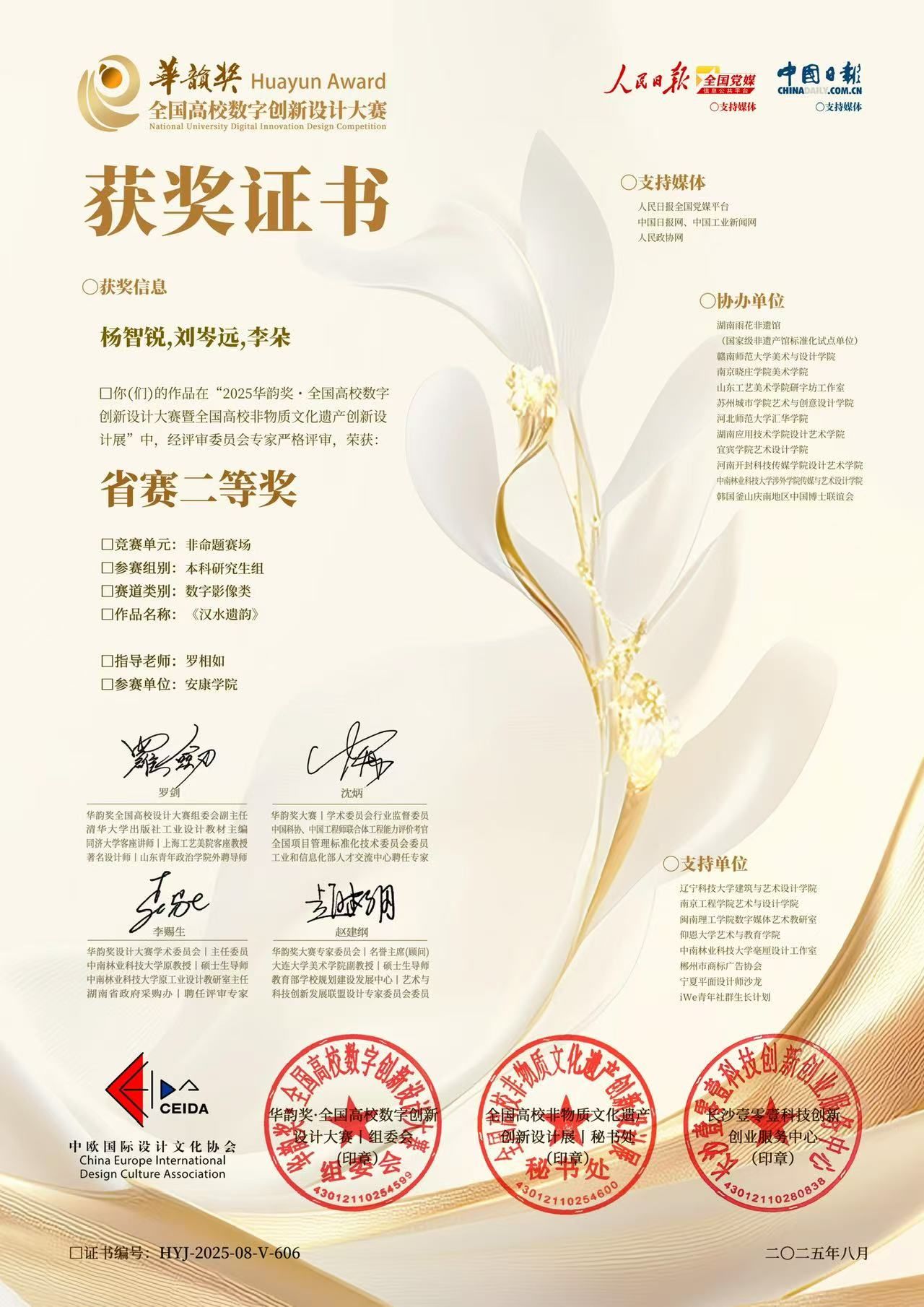 近日,在“华韵奖·全国高校数字创新设计大赛”省级赛区评选中,公司报送的短视频作品《汉水遗韵》在众多参赛作品中脱颖而出,荣获省赛二等奖。这是该作品继获得“华文奖”全国老员工文化创新·文旅创作大赛特等奖后,再次在全国性赛事中取得优异成绩。