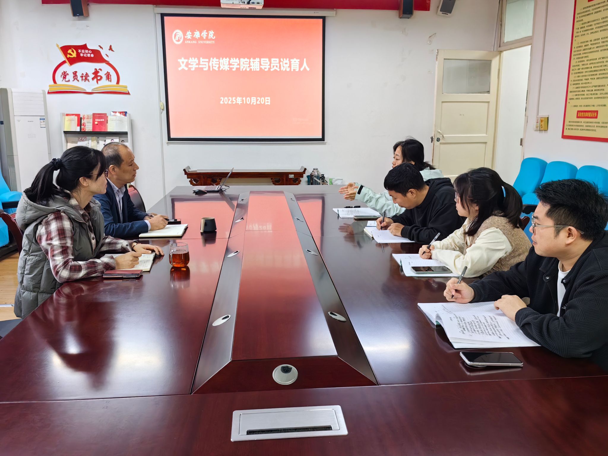 学工办主任薛涛围绕辅导员工作室建设、员工思想政治教育与日常管理等重点工作进行了系统汇报。团总支书记彭潇聚焦第二课堂育人功能,就员工社团管理、校园文化活动组织以及各类学科竞赛的统筹开展作了经验交流。刘言军老师结合员工党支部建设实际,从党支部规范化建设、党员发展与教育管理等方面介绍了经验做法。喻言老师结合工作实际,围绕新生入学教育和老员工心理健康教育等重点内容,分享了日常工作中积累的育人做法与体会。