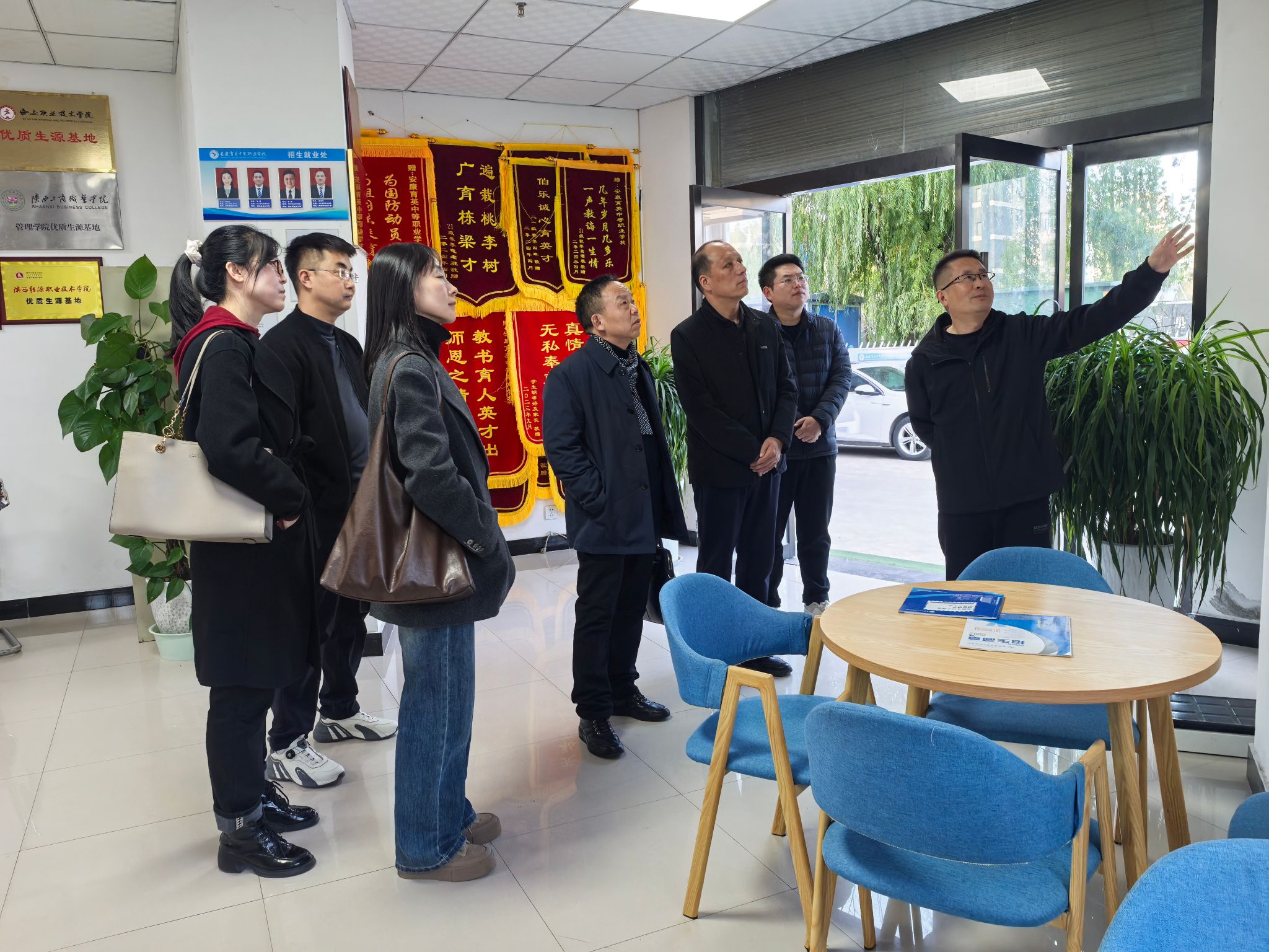 随后,团队一行走访了安康育英中等职业公司,在董事长兼党支部书记王本周的陪同下参观了校园环境及众创空间,深入了解了该校在创新创业教育与职业技能培养方面的先进理念与丰硕成果。在座谈中,王本周分享了公司的办学情况与发展规划,表达了在文化课教学、宣传策划、新媒体平台运维等方面对高素质人才的需求,希望能与公司建立长期合作关系。双方围绕员工实习实践、教师交流、资源共享等潜在合作路径进行了深入探讨,并一致认为在人才培养上具有广阔的合作空间。