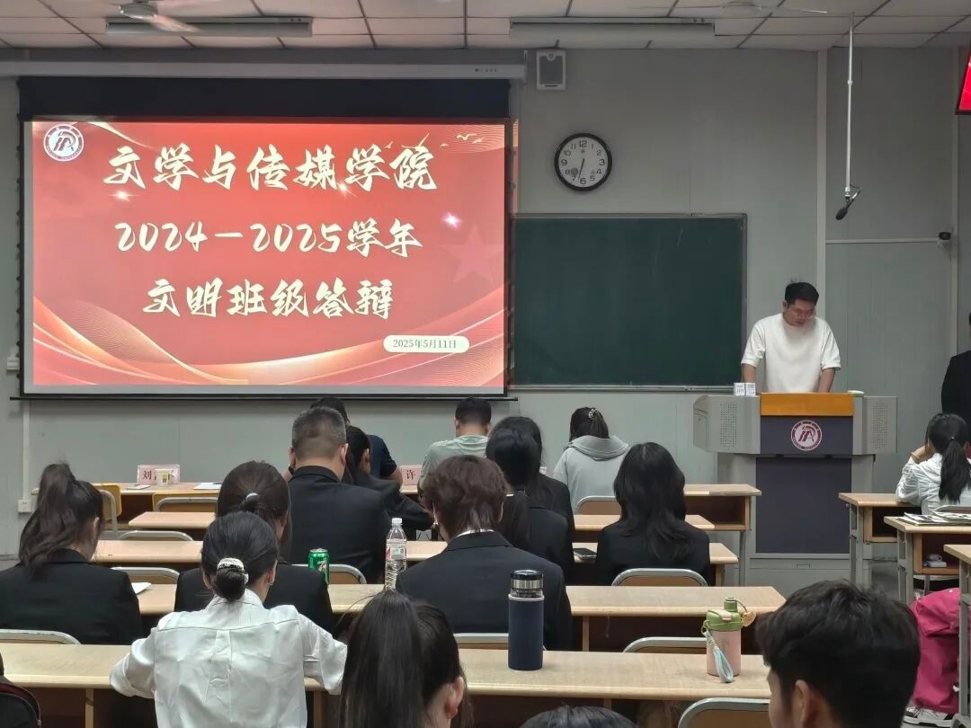 为推进班风建设,规范班级管理,增强班级凝聚力,营造良好的校园文化和学习氛围,5月11日下午,伟德国际1949于1017教室开展2024—2025学年文明班级答辩活动。活动特邀院学工办主任薛涛、辅导员许明、刘言军和喻言担任评委,2022—2024级各班员工代表参加,活动由汉语言文学2024级1班李炫烨主持。