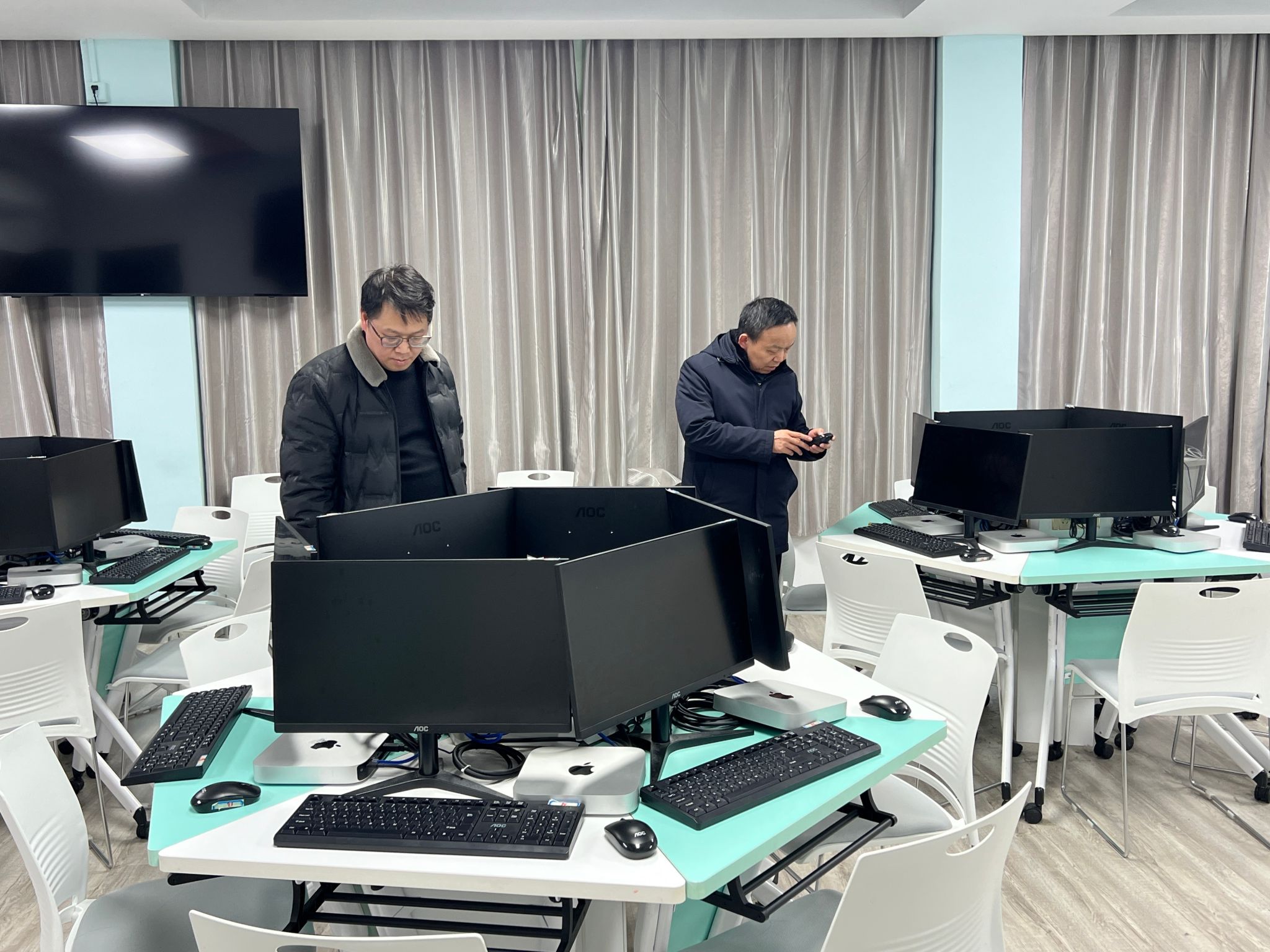 本次检查采取“实地查验+台账核查”的方式有序推进。在实地检查环节,检查人员深入各实训场所,重点对门窗安防状况和电源线路安全进行了细致排查。针对门窗,逐一查验了门窗闭合的密封性与锁具的完好性,确保防盗等安防功能有效;对于电源线路,全面巡检了线路铺设、接口连接情况,重点排查了大功率设备供电线路是否存在老化、松动等潜在风险,从源头防范电气安全事故的发生。在台账查阅环节,检查组仔细翻阅了各实训场所的使用登记台账,详细核对了设备使用时段、操作责任人、维护记录等关键信息,确保实训教学活动全程可追溯,进一步规范实训场所的日常管理流程。