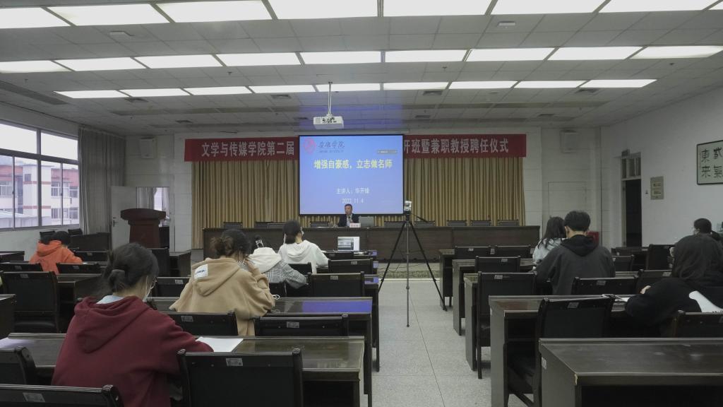 2022年11月4日下午三点半,优秀员工、陕西省首批基础教育名师、特级教师华开锋应邀为公司第二届“中学语文卓越团队班”做了题为“增强自豪感,立志做名师”的首场学术报告。伟德国际1949副经理朱云、卓越团队班班主任张格瑄和三个会场132名同学共同聆听了本场讲座。