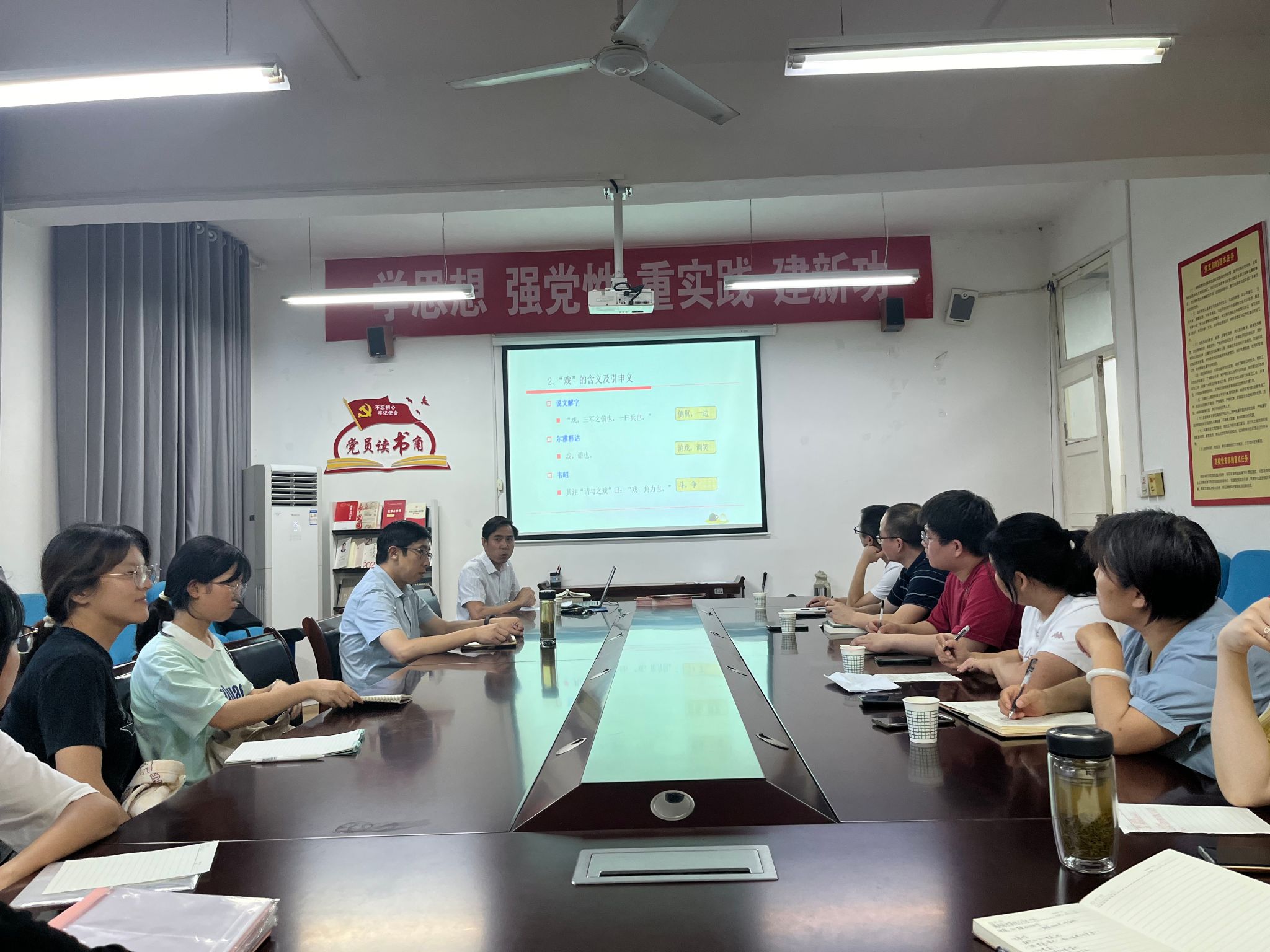 随后,参会师生围绕崔德全老师的报告发表了各自的看法,大家一致认为,崔德全的报告具有较强的理论深度、层次清晰、深入浅出,为公司教师科研论文选题提供了一定的参考和借鉴,同时,也大大激发了员工对古典文学、古典文论的阅读兴趣。