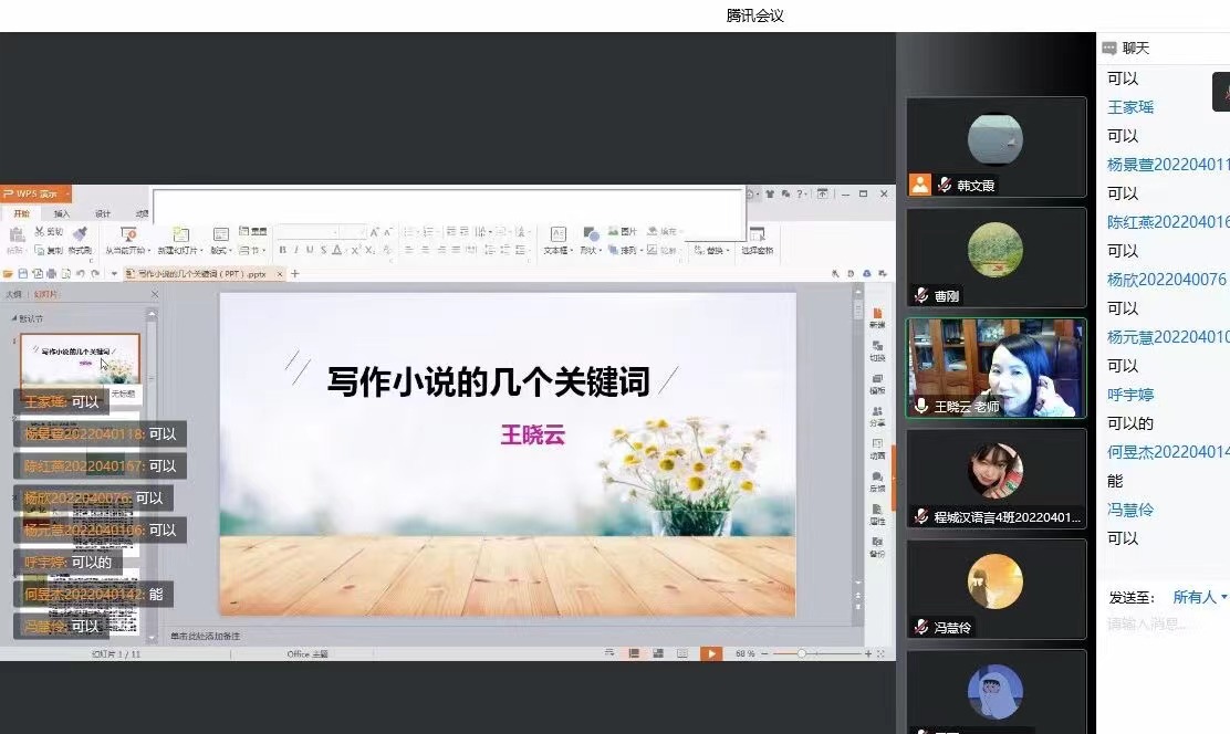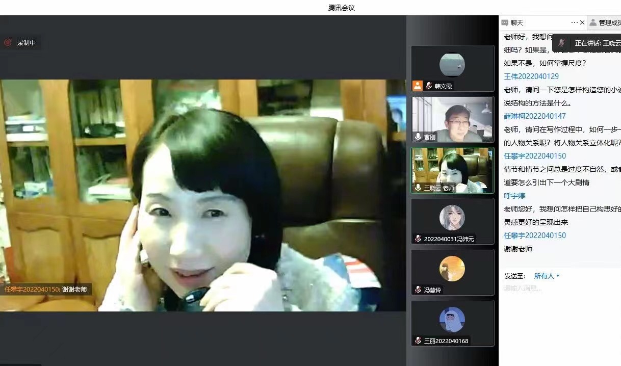 12月13日下午,作家王晓云应伟德国际1949邀请,通过腾讯会议与基础写作课校内教师韩文霞、曹刚一同为汉语言文学专业2022级员工线上讲授“小说的写作”。