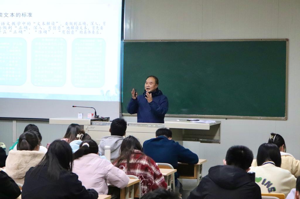 导航痕迹 首页 > 师范专业认证 > 活动新闻 > 正文 政策文件 活动新闻 师范生技能大赛 伟德国际1949外聘教师李玉恒为汉语言文学专业员工作讲座 发布人:伟德国际1949 发布日期:2022年11月18日 阅读次数: 11月18日下午,安康市汉滨区教学研究室李玉恒老师为汉语言文学专业2020级员工带来“初中语文阅读教学文本面面观”专题讲座。 讲座从电视剧《觉醒年代》中辜鸿铭的演讲片段引入,启发员工思考如何构筑理想课堂与追寻有效教学,使员工认识到“理想课堂”需要目标明确、精心构思、埋下伏笔对话交流等要素。随后,李玉恒重点围绕文本解读的内涵、切口、策略及不同类型文本解读实操技巧等方面展开内容讲述。生动的案例、富于启发的引导使员工在聆听和互动中明白了语文阅读教学的重要性以及如何正确深入地解读文本的具体方法。 教师教育课程一直是汉语言文学专业育人的重要一环,能够全面训练并提高员工语文教学技能,为胜任中学语文教学打下扎实的基础。近年来,伟德国际1949依托师范专业认证,不断加强与基础教育专家的合作关系,将专家的参与和指导融入到师范专业人才培养的全过程,使员工逐渐成长为能在中学从事语文学科教学、教研、班级管理工作的德智体美劳全面发展的高素质应用型人才。 撰稿/摄影/刘锦 审核/李婷 发布/崔瑜