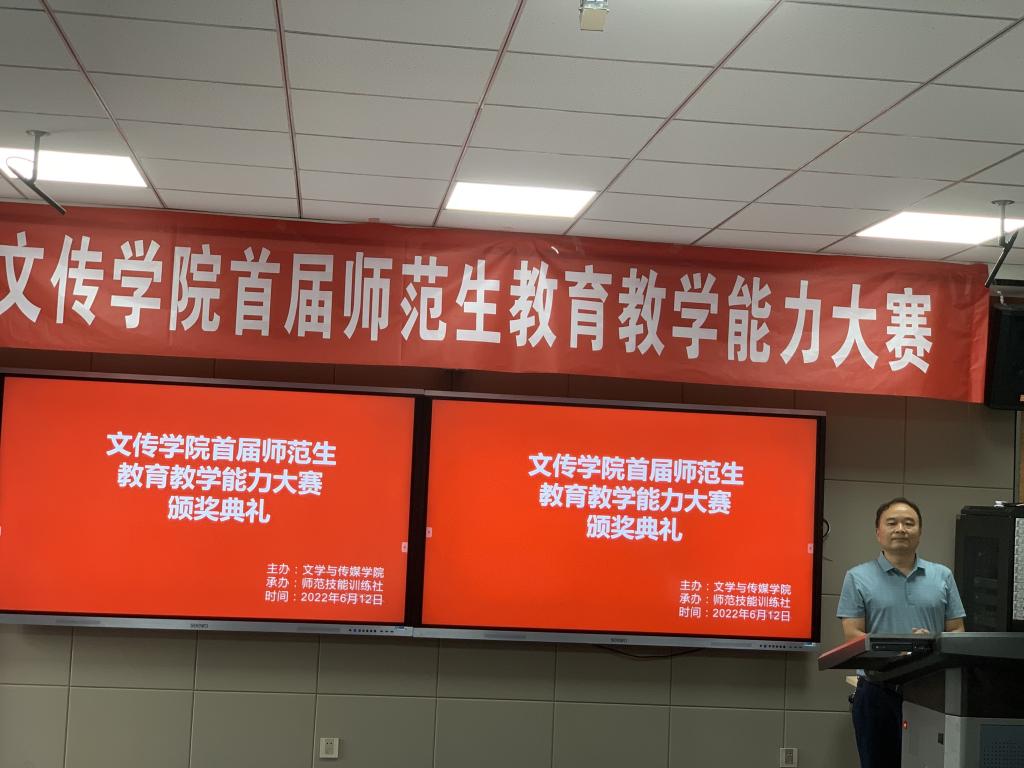 大赛伊始,系主任韩文霞致开幕词为选手们加油鼓劲并预祝大赛圆满成功。经过公司初赛和复赛脱颖而出的15位决赛选手按照抽签顺序依次完成3分钟即席演讲、5分钟说课、15分钟模拟授课三个环节的竞赛内容,粉笔字书写竞赛单元于比赛前一日完成。