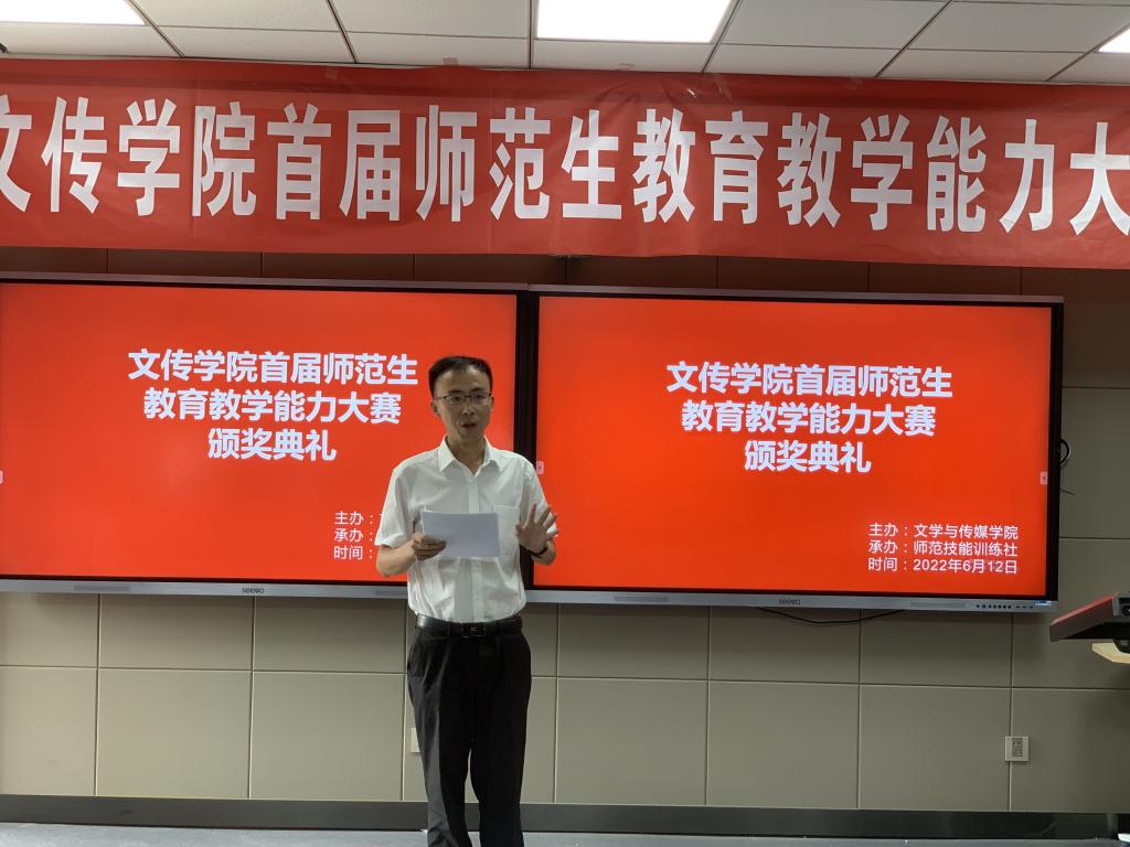 2022年6月12日,由师范技能训练社承办的伟德国际1949首届师范生公司产品能力大赛在公司师范生职业技能训练中心4204教室隆重举办。本次大赛特邀安康市汉滨区教研室高级教研员李玉恒老师,汉滨初级中学董事长助理、教务主任全东老师,伟德国际1949教学督导邸玲老师共同担任评委。文学与传媒公司党总支书记芦伟、副经理朱云、党总支副书记杨海蓉、汉语言文学系主任韩文霞、语文学科教学论任课教师、师范技能训练社指导教师张格瑄在现场观摩比赛。本次大赛采用网络同步直播的方式进行,公司其他教师和员工通过校园网观摩了比赛过程。